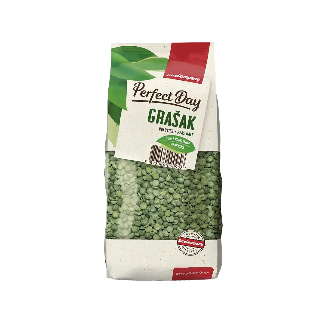 Dry pea halves are derived from ripe peas and have the highest calorie, carbohydrates, fats, and protein values out of all pea sorts. They are rich in fibers which regulate digestion, but also in vitamins and antioxidants which strengthen immunity and heart health. Preparation: before cooking, soak the pea halves in cold water to soften them. Drain, wash out and cook by your own recipe, with additional ingredients and spices. Peas are easily prepared as a stew and go well with various vegetables, legumes and meat.