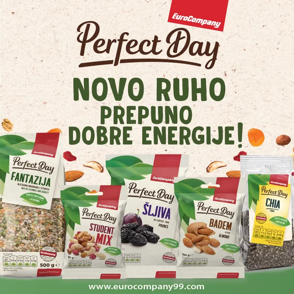 Raznoliko društvo EuroCompany hrskavih orašastih plodova, suhog voća, zdravih sjemenki i ukusnih mahunarki od sad potražite u NOVOM DIZAJNU.
